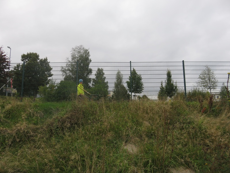 Wir treffen zwei nette junge Frauen mit ihrem Umweltbus auf der Wiese an der Kolbe-Straße. Sie kommen von weit her, von Leipzig, um mit uns einen Vormittag zu gestalten.