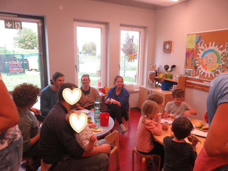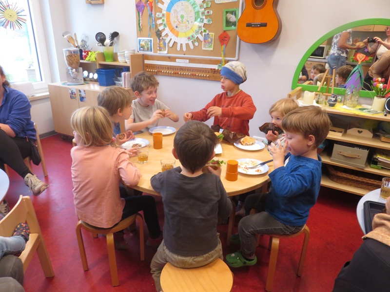 Der Tag startet mit einem Frühstücksbuffet, welches alle Eltern gemeinsam für die Kinder vorbereitet haben. Die Eltern haben etwas Gesundes, Lustiges oder Gebackenes mitgebracht. Dabei wurde darauf geachtet, dass nicht so viel Zucker enthalten ist.