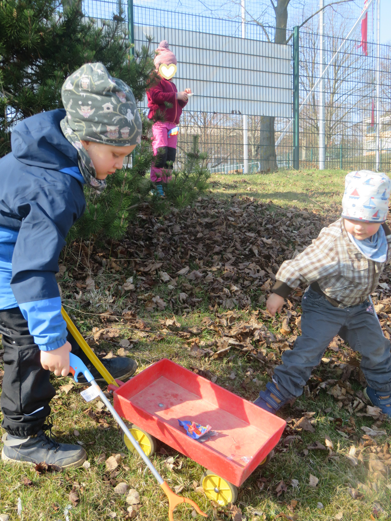 Nach einem schönen Osterprogamm, welches von den Kindern der einzelnen Gruppen für alle Kinder im Haus aufgeführt wurde, waren im Garten viele Osternester versteckt. Jedes Kind hat ein Nest gefunden.