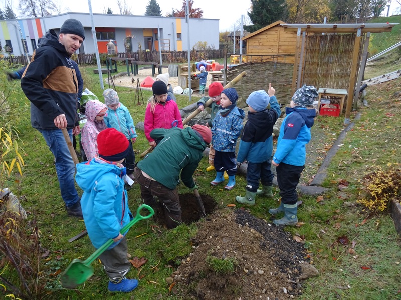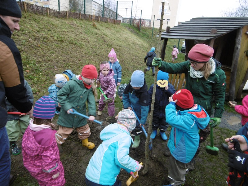 Wie schon im vergangenen Jahr haben wir 2 Apfelbäume vom Verein „SLOWFOOD -mehr als nur Essen “ gesponsert bekommen. Schnell wurden Plätze gefunden und gemeinsam mit den Kindern, Frau Hladik(Gärtnerei Krause) und Frau Mickan vom Verein SlowFood die Bäume eingepflanzt. Es geht darum alte Apfelsorten, z.B. Lausitzer Nelkenapfel, zu erhalten und zu pflegen. Die Kinder vom Kinderhaus werden sich gut um die Bäume kümmern und hoffen irgendwann auf viele Äpfel.