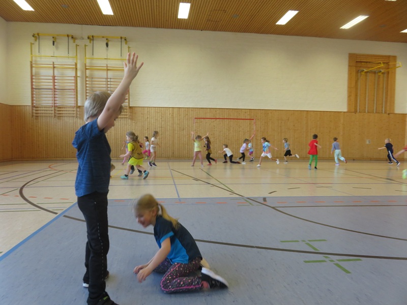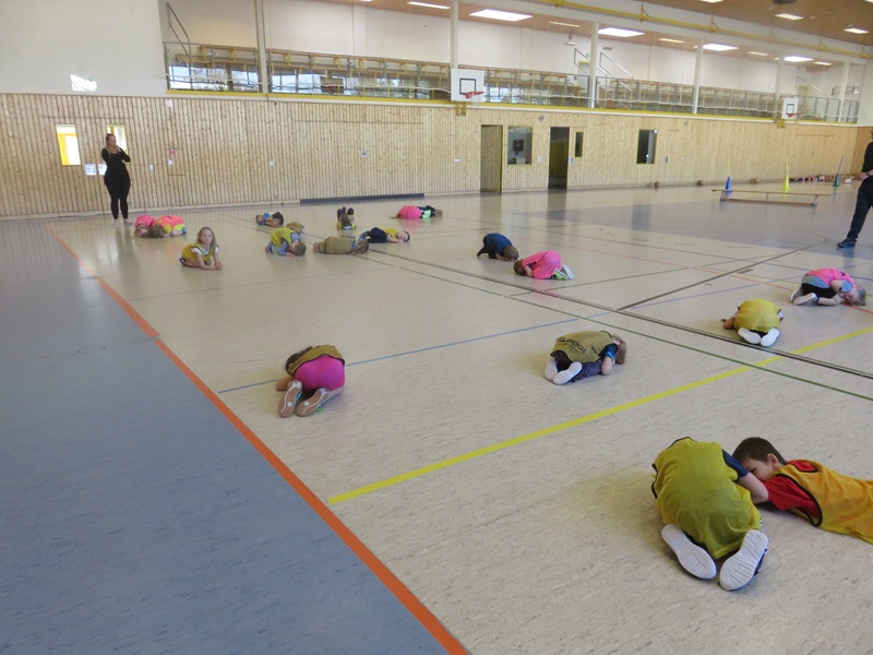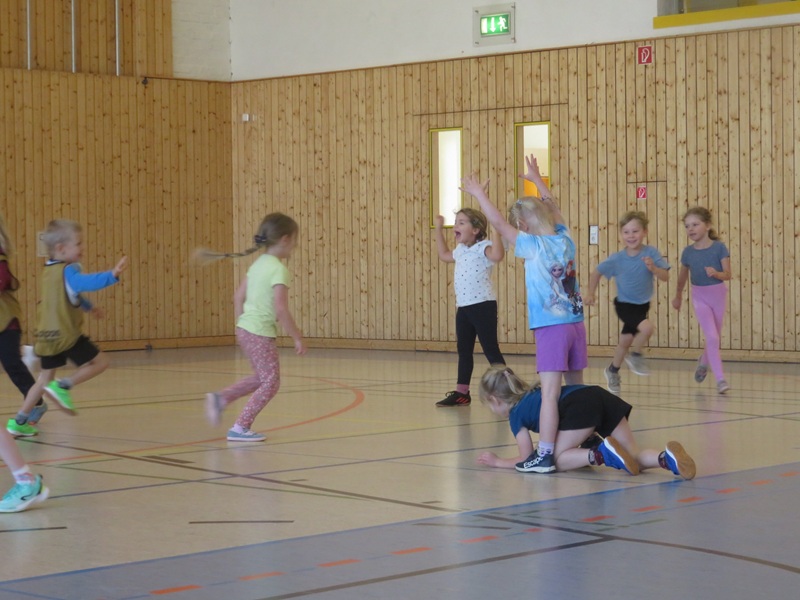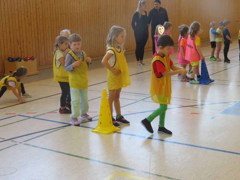 Nach einer kleinen Aufwärmung mit verschiedenen Bewegungsspielen folgt ein abwechslungsreicher Parcours. Dieser stellt die Kinder immer wieder vor neue Herausforderungen, wo Geschicklichkeit und Kraft trainiert werden. Zwischendurch gibt es Pausen zum Trinken und Erholen. Zum Abschluss wird das Spiel McDonalds gespielt, was den Kindern sehr viel Spaß macht.
