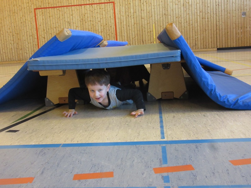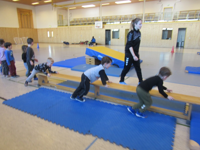 Nach einer kleinen Aufwärmung mit verschiedenen Bewegungsspielen folgt ein abwechslungsreicher Parcours. Dieser stellt die Kinder immer wieder vor neue Herausforderungen, wo Geschicklichkeit und Kraft trainiert werden. Zwischendurch gibt es Pausen zum Trinken und Erholen. Zum Abschluss wird das Spiel McDonalds gespielt, was den Kindern sehr viel Spaß macht.