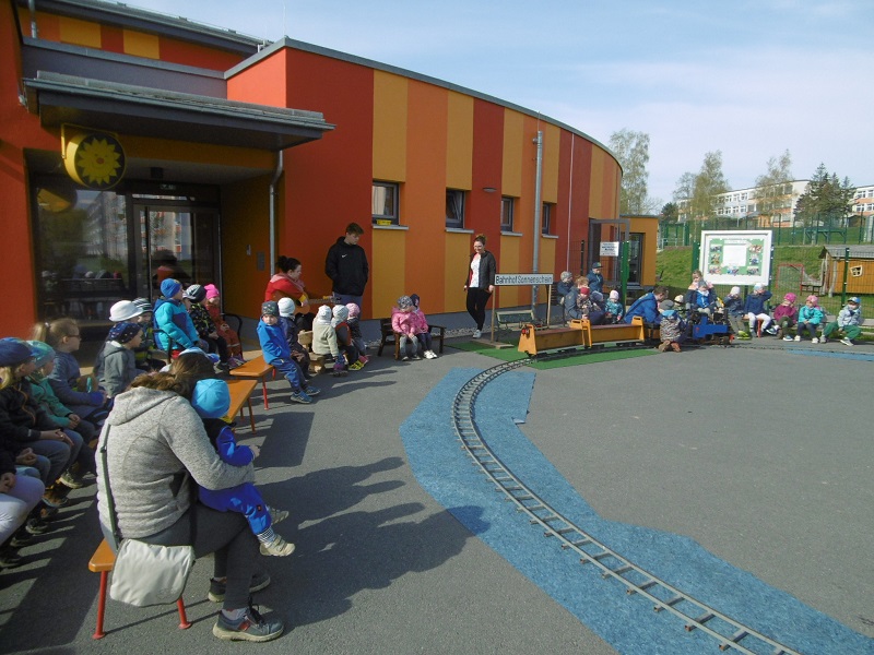 Wieder einmal fuhr eine Dampflok mit lautem Pfeifen im Sonnenscheinbahnhof des Kinderhauses ein!