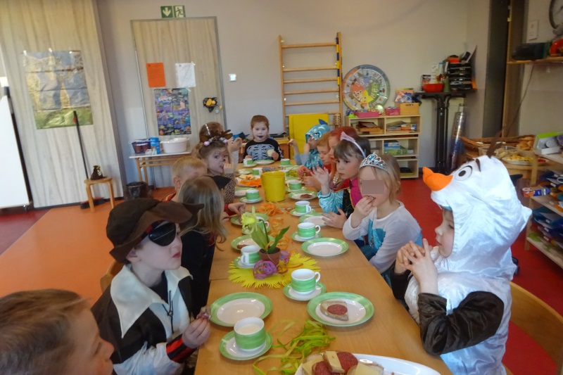 Am 01.03.2022 feierten wir in unseren Gruppen Fasching. Alle hatten sich mit tollen Kostümen verkleidet. Nach einem lustigen Frühstück ging es mit Tanz, Spiel und Spaß durch den Vormittag. Zwischendurch stärkten sich alle mit Pfannkuchen. Viel zu schnell ging der lustige Vormittag zu Ende.