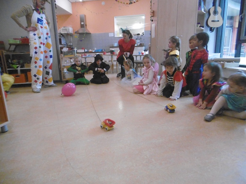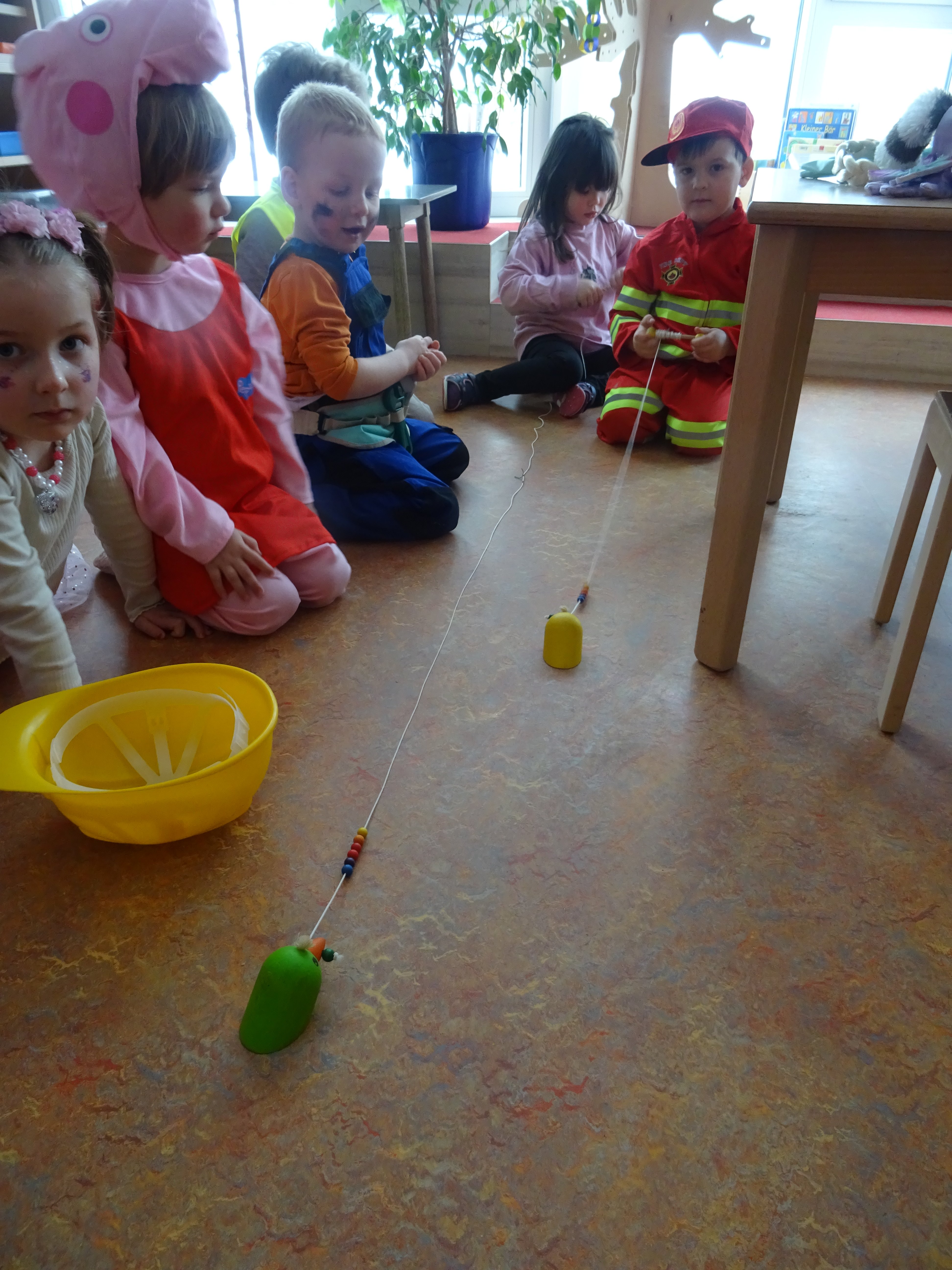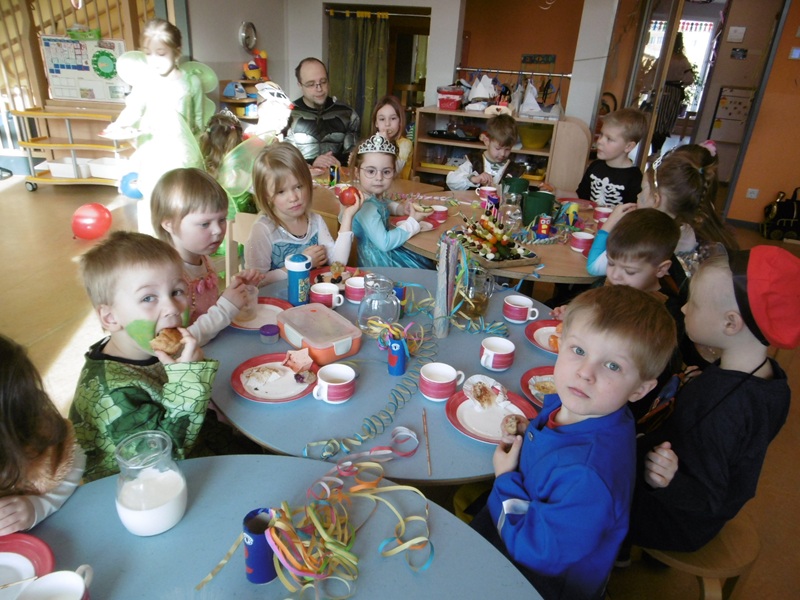 Alle Kinder sind verkleidet und freuen sich auf diesen Tag. Schon 2 Wochen vorher haben wir Girlanden und Tischschmuck für das Faschingsfest gebastelt. Da haben alle Kinder mitgeholfen. Heute, zum Faschingsdienstag, sehen unsere Zimmer bunt und lustig aus.