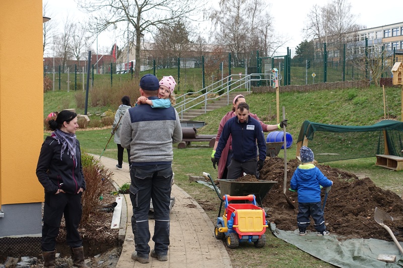 Viele Eltern haben sich beteiligt. Dieses Mal wurde nur im Garten gearbeitet. Bei schönem Wetter halfen auch die Kinder mit und es wurde viel geschafft und verschönert. Hinterher gab es eine kräftige Mahlzeit und der Arbeitseinsatz ging gemütlich zu Ende.