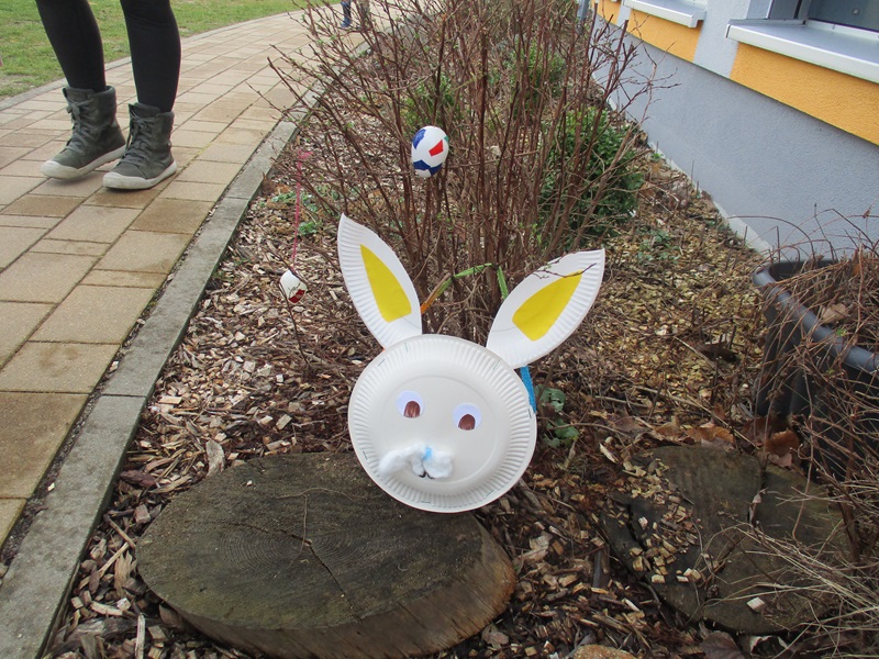 Wir basteln und malen, schmücken im Garten und Zimmer viele Ostersträuße, zählen die Tage bis zum Osterfest.