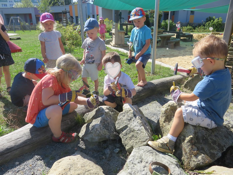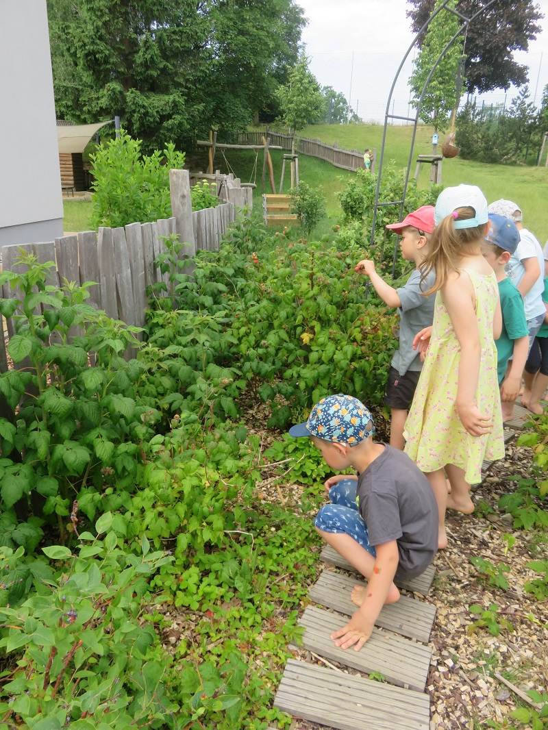 Bis wir dort ankommen, gibt es unterwegs schon ganz viel zu entdecken. Im Wald wird dann gebaut, gespielt und kleine Tiere werden beobachtet. Natürlich gibt es auch ein paar Pausen zum Verschnaufen. Dabei werden dann, die von den Eltern liebevoll gepackten Rucksäcke mit Snacks und Getränken geöffnet und tüchtig gegessen und getrunken.