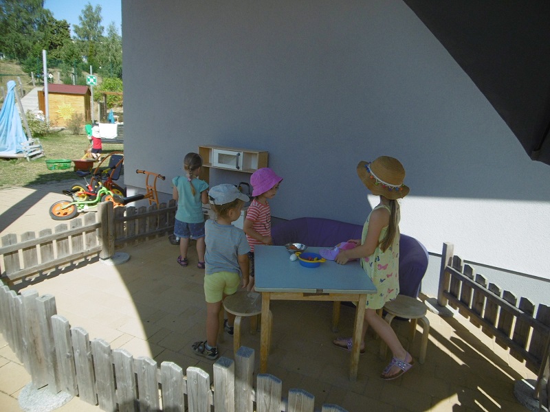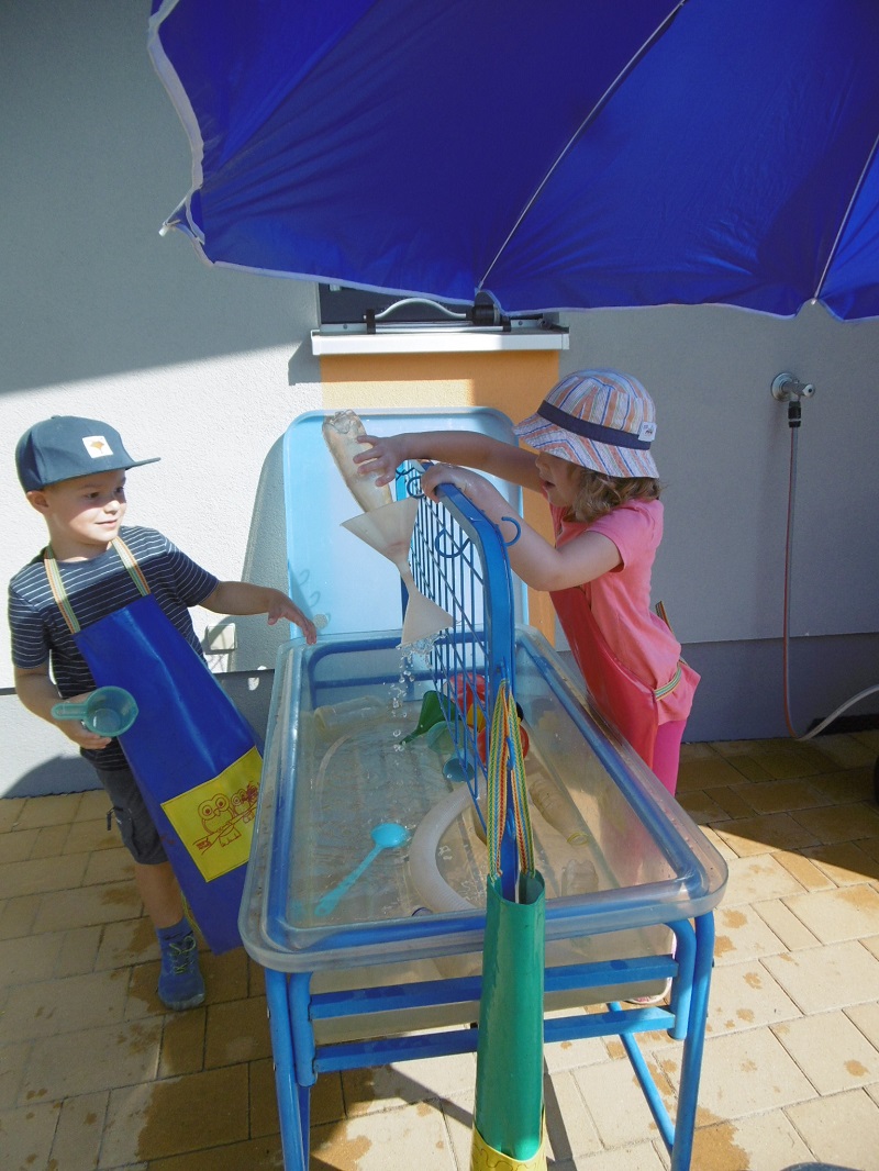 Da die alte, selbstgebaute Matschküche auseinander gefallen ist, konnnten wir uns von Spendengeldern eine neue,wetterbeständige Matschküche anschaffen. Heute wurde diese von den Kindern in Besitz genommen.