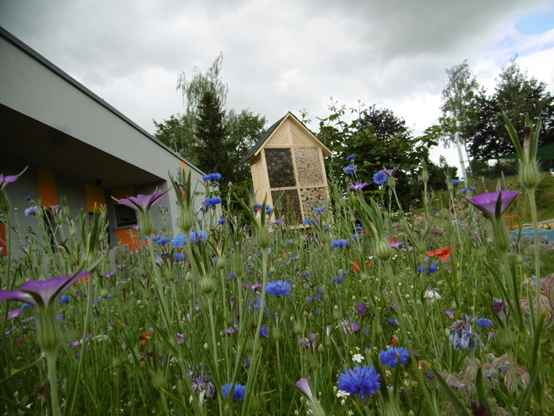 Wir treffen zwei nette junge Frauen mit ihrem Umweltbus auf der Wiese an der Kolbe-Straße. Sie kommen von weit her, von Leipzig, um mit uns einen Vormittag zu gestalten.