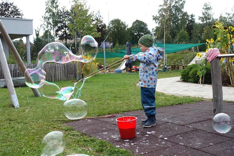 Am Kindertag hatte bei uns im Kinderhaus-Garten ein Wandertheater seine Bühne aufgebaut. Wir wurden mit dem Märchen „Vom Fischer und seiner Frau“ überrascht. Nach einem kräftigen Applaus gab es im Sonnenschein für alle ein Eis. Dann schwebten noch viele Seifenblasen durch den Garten und haben den Kindern Spaß bereitet.