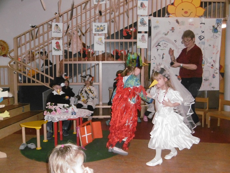Die Vogelhochzeit ist auch in unserem Kinderhaus ein immer wiederkehrender Brauch. Zur Theatervorstellung laden jedes Jahr die Vorschulkinder ein, singen, spielen und tanzen zum Lied“ Ein Vogel wollte Hochzeit halten….“. In selbst gefertigten Kostümen ist es ein besonderes Erlebnis für alle Kinder.