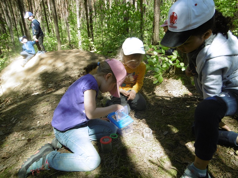 Sie haben Alles, was wir zum Erforschen der Wiese brauchen mitgebracht.