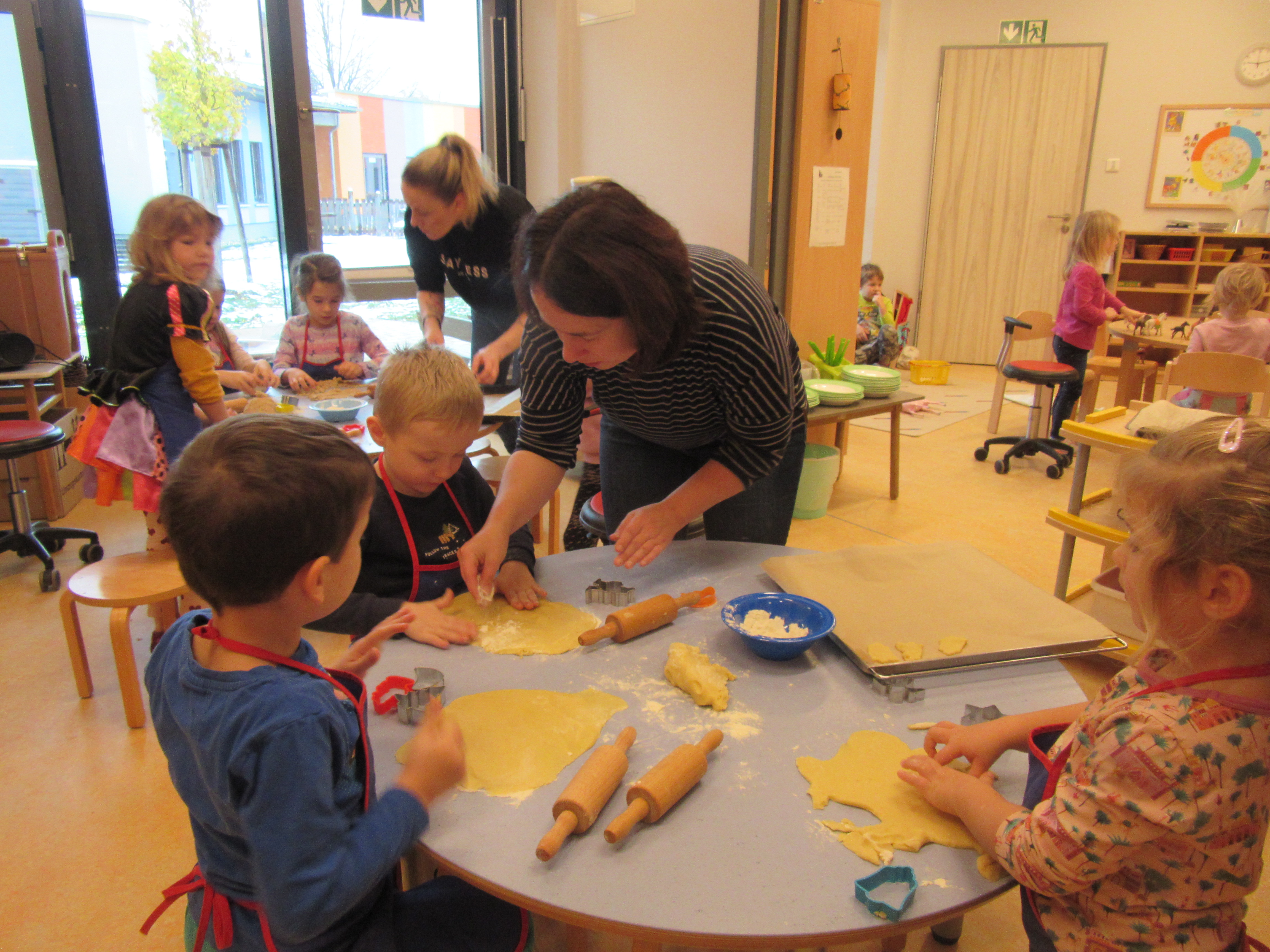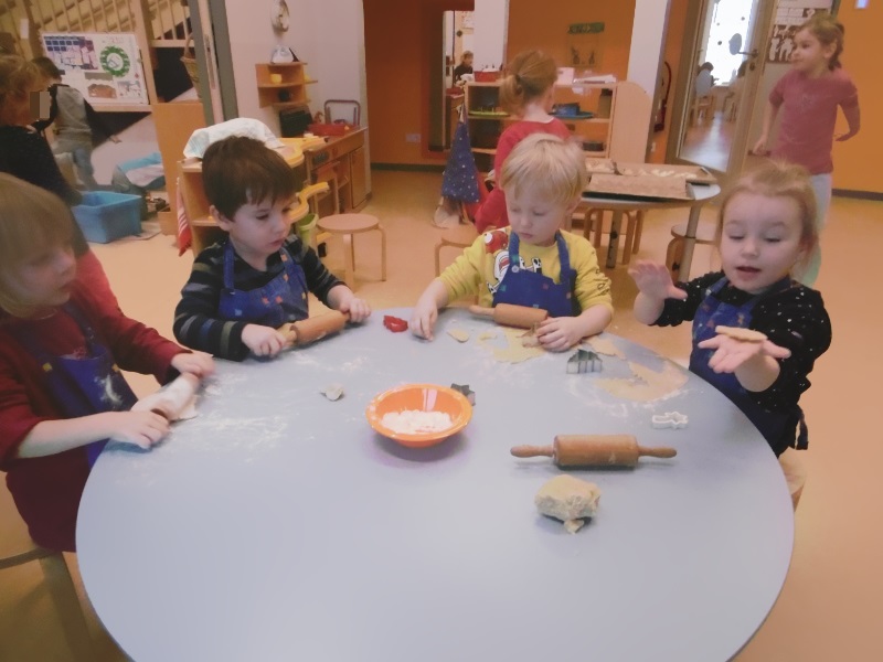 Pünktlich zum Beginn der Adventszeit kam der 1. Schnee und in unserer Backwoche, unterstützt von Eltern und Großeltern,duftete es im ganzen Haus nach Weihnachtsplätzchen. Natürlich hat auch der Nikolaus die Hausschuhe der Kinder hier im Kinderhaus gefunden und mit Zaubernüssen gefüllt. Beim Nikolaus-Sonnenscheintreff sangen und spielten die Kinder aus jeder Gruppe etwas Weihnachtliches und gestalteten so ihr eigenes Programm.