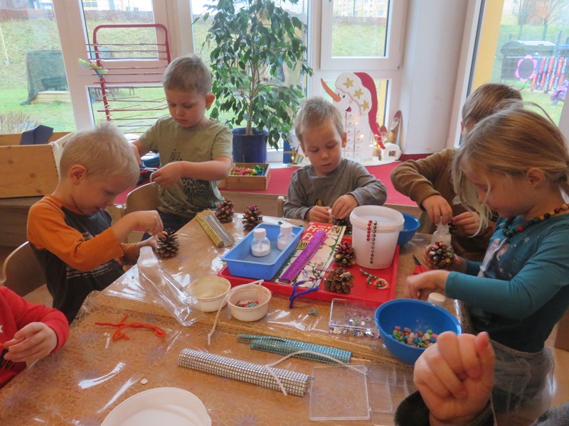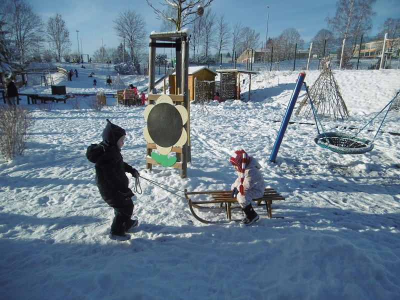 Auch dieses Jahr wurde wieder fleißig gebacken(leider ohne Eltern) und gebastelt. Wir haben uns über die Überraschungen in unseren Schuhen zum Nikolaustag gefreut. Pünktlich zum Advent kam auch der 1. Schnee und wir konnten auf unserem hauseigenen Berg mit den „Popsrutschern“ hinab sausen. Schneemänner entstanden im Garten, die leider viel zu schnell geschmolzen sind.